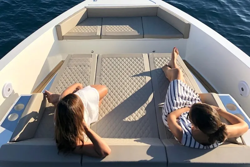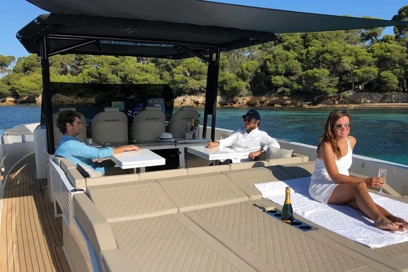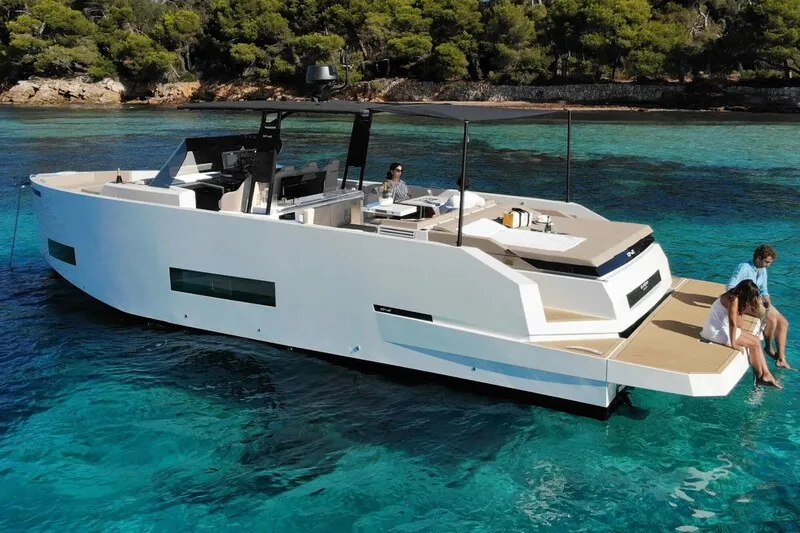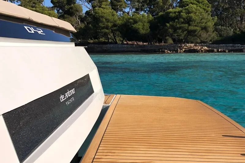 El De Antonio D42 es una de las lanchas de lujo más exclusivas del Mediterráneo. Diseño minimalista, gran velocidad de crucero y una cubierta generosa pensada para disfrutar al máximo: solarium de proa, zona lounge, plataforma de baño trasera y acceso directo al agua. Todo lo que necesitas para un día perfecto en las calas de Mallorca.