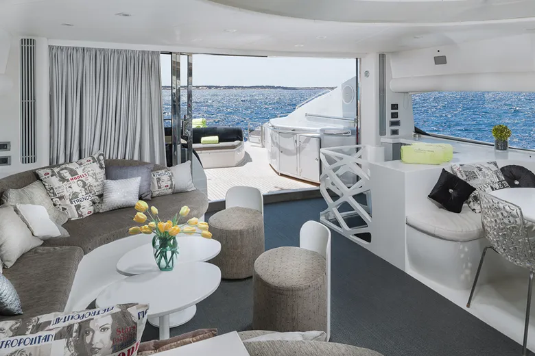 Spüren Sie die aufregende Geschwindigkeit im kristallklaren Wasser Ibizas vom Sunseeker Predator 82 aus. Das perfekte Mietboot auf Ibiza, um einen Traumurlaub beim Segeln auf Ibiza und Formentera zu verbringen. Möglichkeit eines Catering-Services durch die besten Köche Ibizas. Die Erfahrung, bei uns ein Boot auf Ibiza zu mieten, wird Ihre beste Entscheidung sein. Zum Spaß stehen Wakeboarden und Wasserski zur Verfügung.
