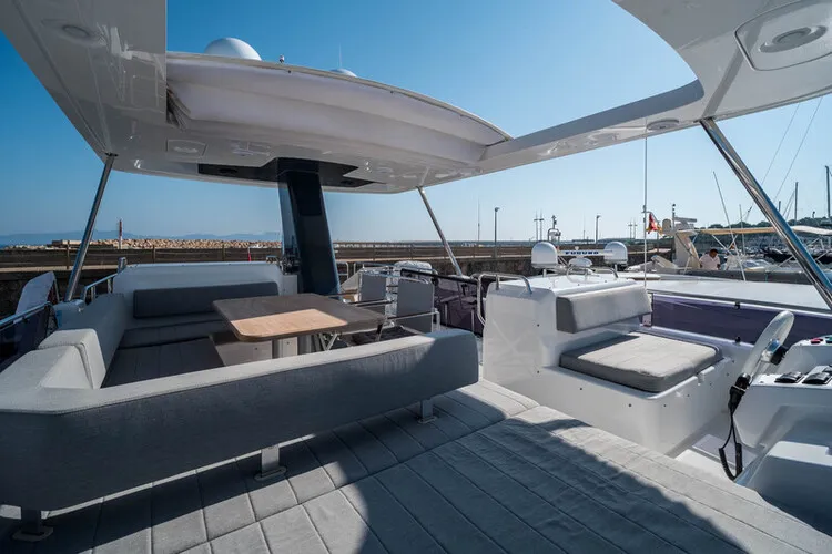With capacity for 6 guests, the Sirena 58 offers 3 elegant cabins and 3 bathrooms, ensuring a private and luxurious stay. Additionally, its flybridge with hardtop, outdoor shower, and relaxation areas make it the perfect place to enjoy panoramic sea views while cruising the beautiful Mallorcan coastline.