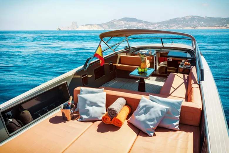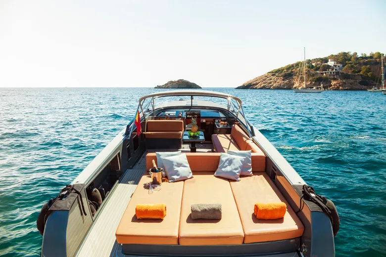 Discover the ultimate boat rental experience in Ibiza aboard the Vandutch 40. Explore the crystal-clear waters of Ibiza with this modern boat that will make your visit to the beaches of Ibiza and Formentera truly special. Illetas, Cala Escondida, or Cala Tarida are just a few of the many beaches you can enjoy while sailing on our Vandutch 40 available for charter in Ibiza.