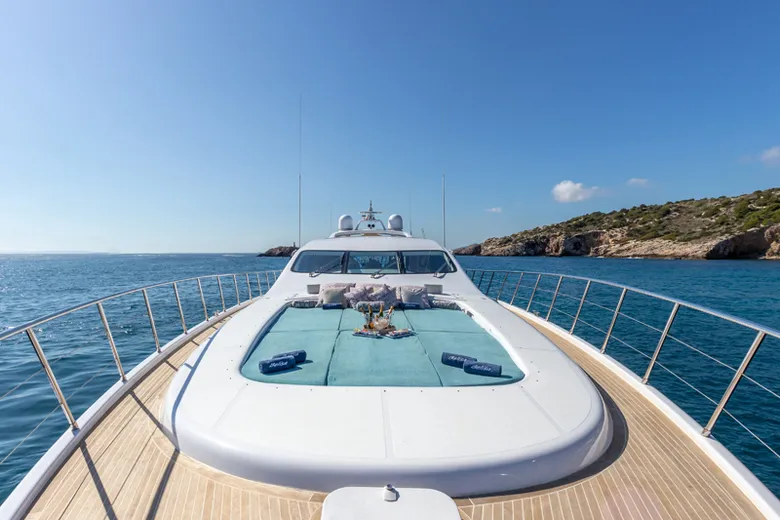 Explore Ibiza aboard a first-class superyacht. Immerse yourself in a unique experience at sea with our exclusive fleet. Our Mangusta 108 in charter in Ibiza is the perfect superyacht to enjoy the wonderful beaches of Ibiza and Formentera.