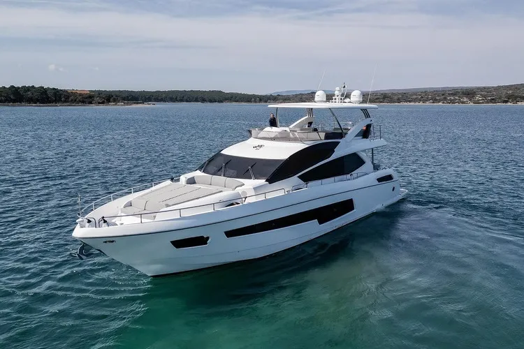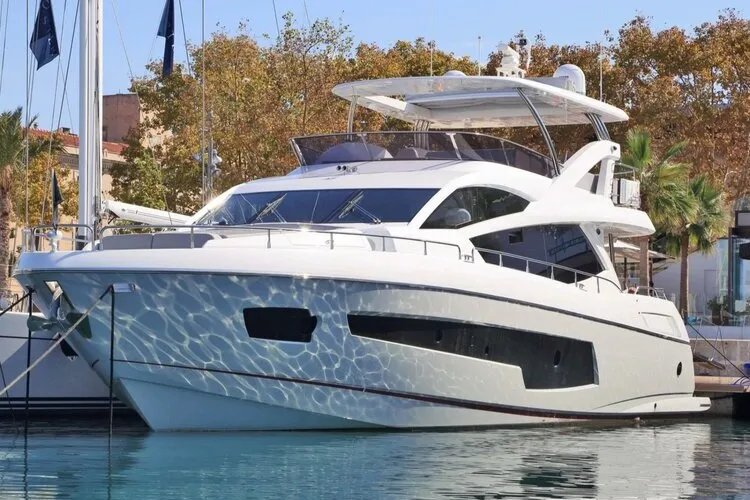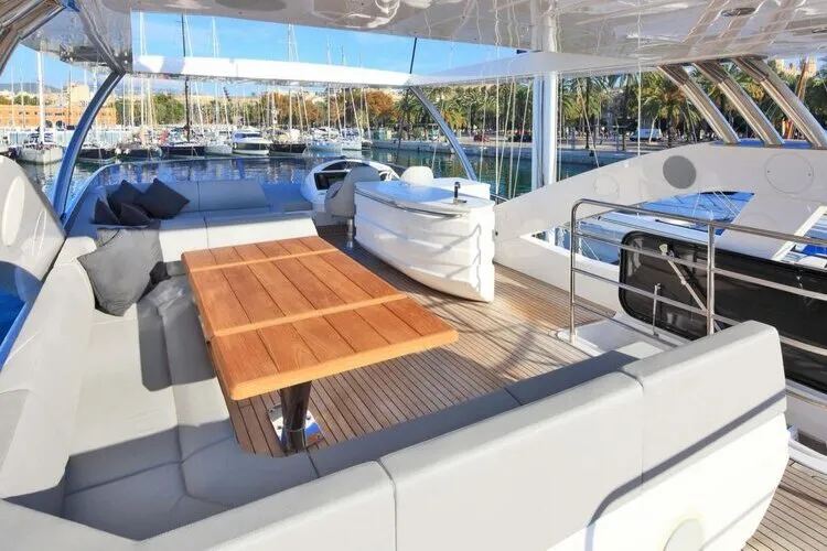 Le Sunseeker 75 Yacht est l’un des meilleurs bateaux neufs à louer à Majorque. Également disponible pour embarquer à Ibiza (semaine). Plein d’extras comme des stabilisateurs, des skis nautiques, tuba, paddle surf et un Williams 385 Jet. L’équipage est composé de 2 personnes. Le bateau offre beaucoup d’espace et de divertissement à bord. Possibilité de piscine anti-méduses.