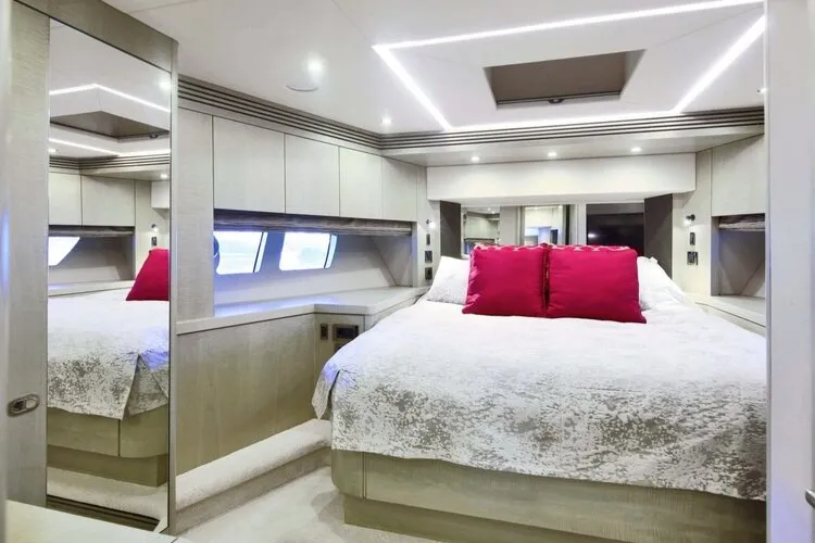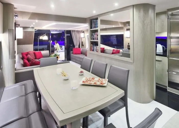 Le yacht dispose de 4 cabines et peut accueillir jusqu’à 6 invités plus l’équipage pendant la nuit. Pendant la journée, il peut recevoir jusqu’à 10 invités, en plus de l’équipage.